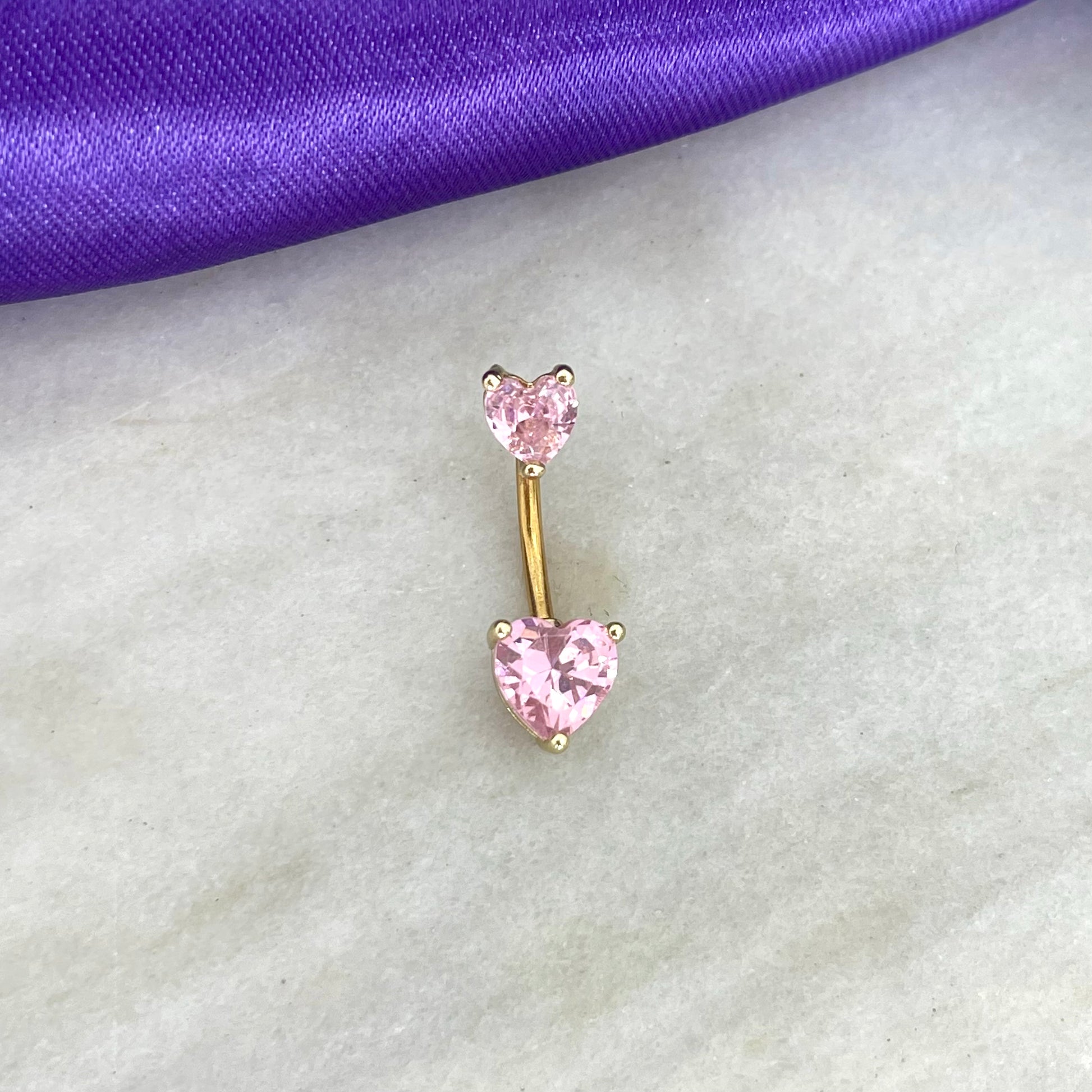 Ombligo Dorado Doble Corazón Rosa